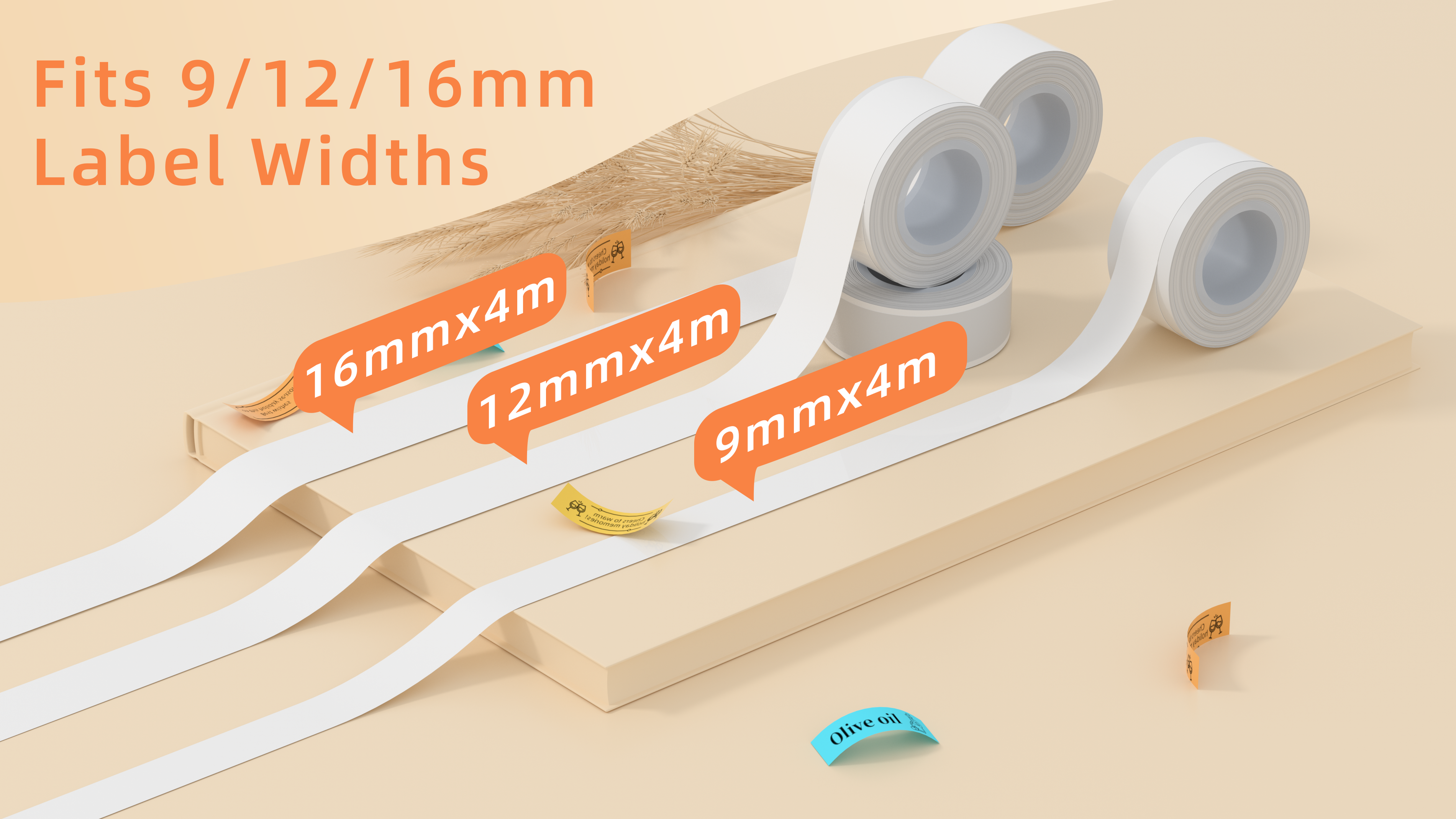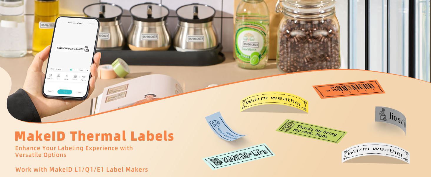 MakeID L1 E1 Q1 Label Maker Tape Refill, 5 Rolls 16mmx4m (0.63"x13') White/Transparent Continuous Consumable Thermal Lamination Office Label Tape Replacement
